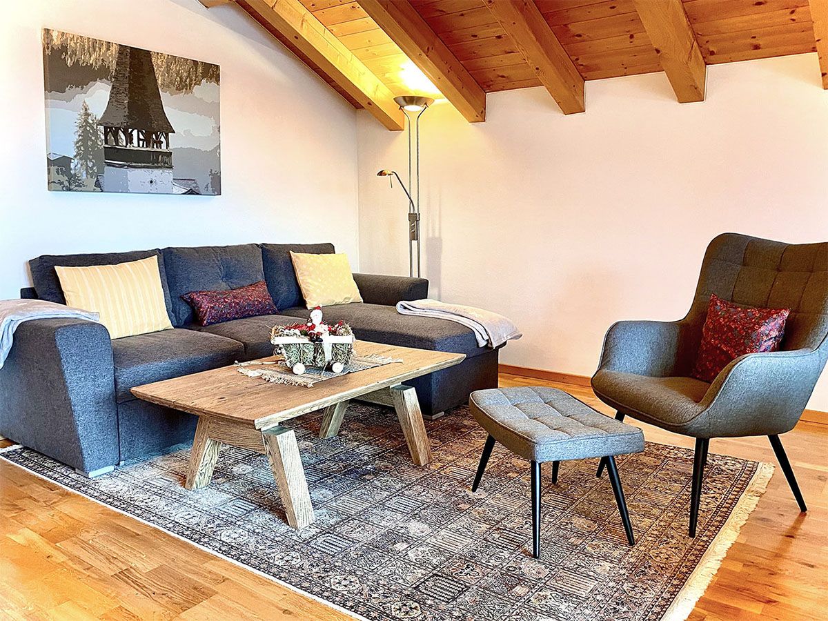 100 Meter neben dem Hotel bieten wir unseren Gästen eine wunderschöne, helle 3 ½ - Zimmer Maisonette Wohnung. Zusätzlich zum grosszügigen Wohnraum, gibt es auf der Empore eine schöne Sitzecke mit einem Schlafsofa. Im unteren Teil auf der Veranda steht ein weiteres Schlafsofa für 1-2 Personen. Das eigentliche Schlafzimmer verfügt über ein eigenes Badezimmer mit Badewanne. Ein zweites Badezimmer ist direkt im Wohnraum angeschlossen. Vom Balkon aus hat man die atemberaubende Bergsicht. Das Apartment bietet Platz für 2 - 6 Personen. Es ist die ideale Unterkunft für kleinere oder grössere Familien.