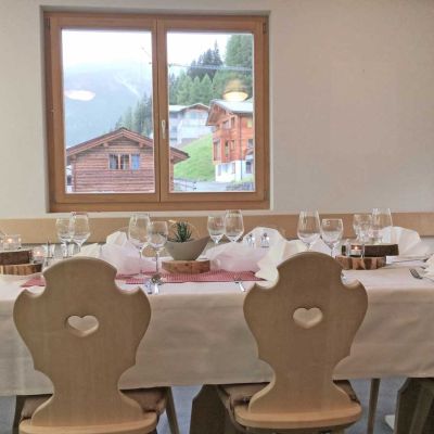 Unsere Sonnenterrasse bietet Platz für bis zu 120 Gäste, während unsere gemütliche Arvenstube 60-90 Personen für ein Dinner beherbergt.